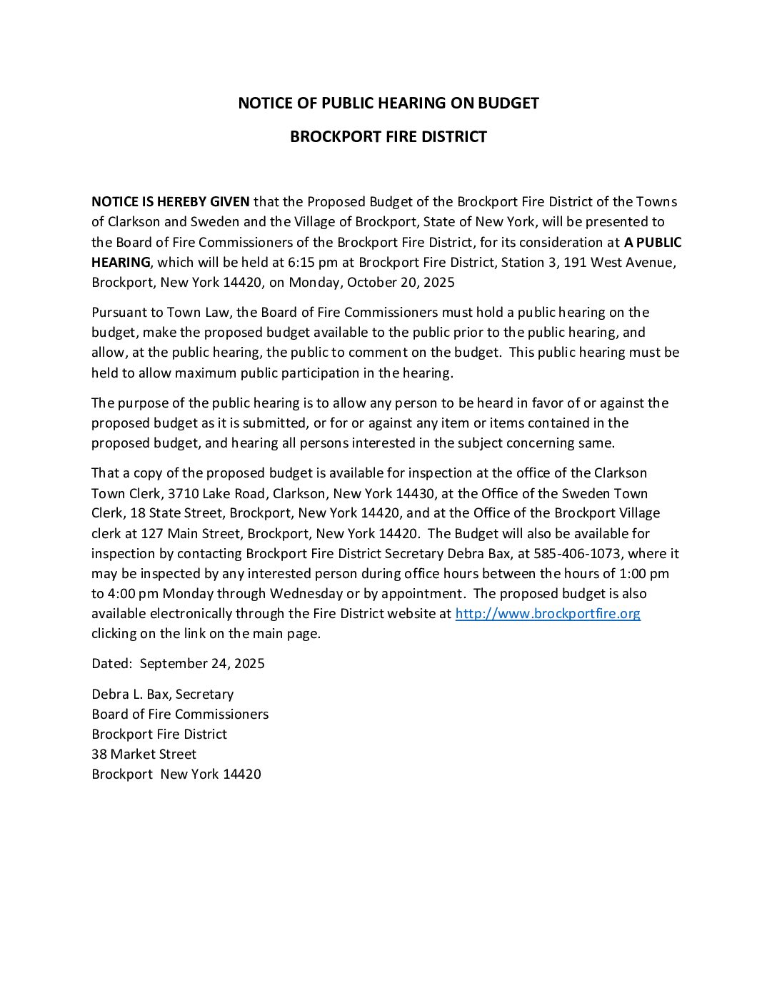 View Larger Image Notice of Public Hearing on 2026 Budget Download File Type: pdf File Size: 97 KB By Greg Gartland|2025-09-25T11:34:40-04:00September 25, 2025|Comments Off on Notice of Public Hearing on 2026 Budget About the Author: Greg Gartland